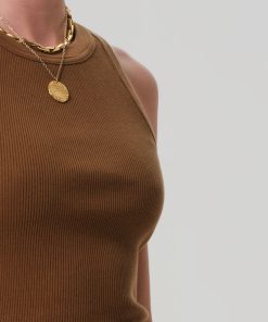 Looks Like: Medium to dark bronze high neck sleeveless tank