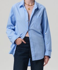 The Kayla Shirt is a timeless button-up, cut from ultra-lightweight cotton poplin with an airy, breathable hand. Designed with a relaxed silhouette and long sleeves, it drapes effortlessly for a laid-back yet polished feel. Wear it tucked, layered, or left loose for versatile everyday styling.