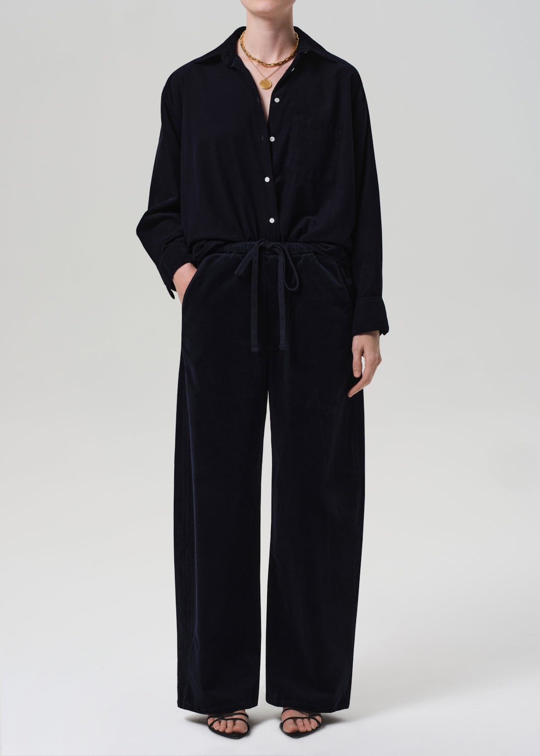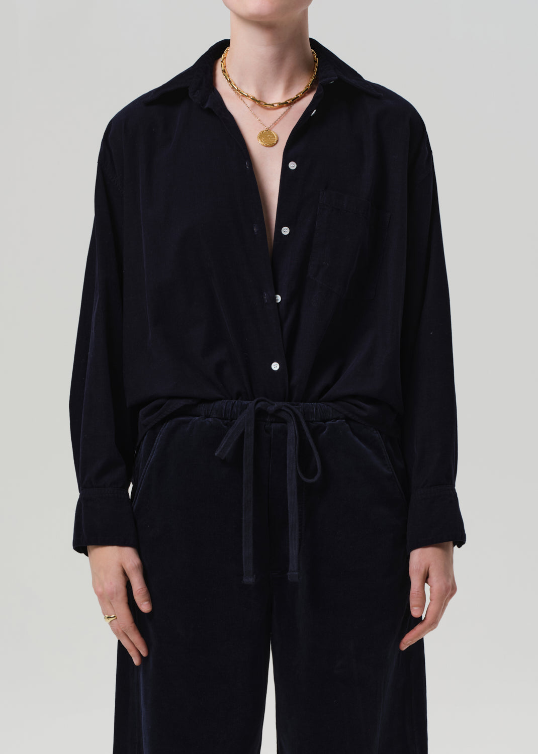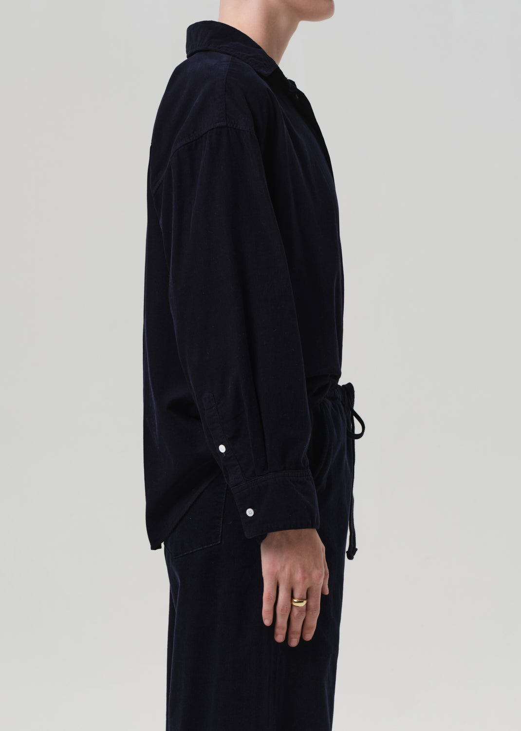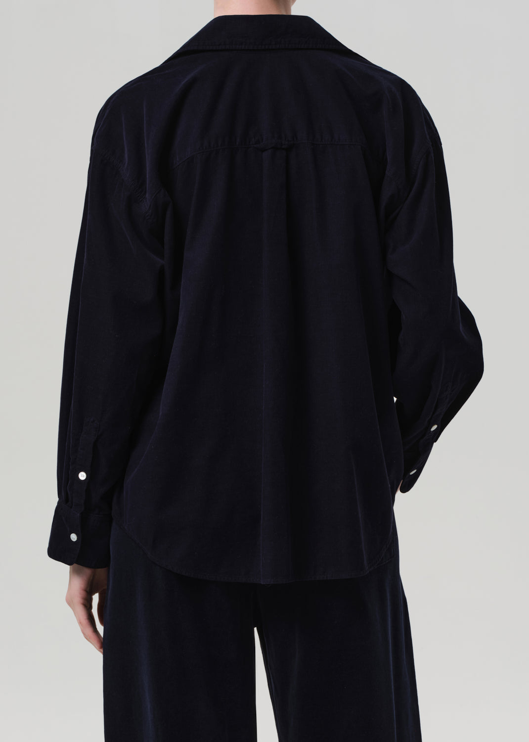 The Kayla Shirt is a timeless button-up reimagined in lightweight baby corduroy with a soft, velvety hand. Designed with a relaxed silhouette and full-length sleeves, it drapes effortlessly for a laid-back yet polished feel. Wear it tucked, layered, or left loose for versatile everyday styling.
