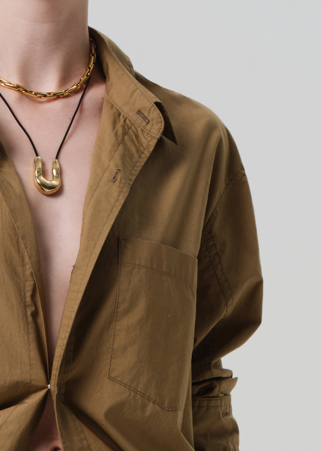 The Kayla Shirt is a timeless button-up, cut from ultra-lightweight cotton poplin with an airy, breathable hand. Designed with a relaxed silhouette and long sleeves, it drapes effortlessly for a laid-back yet polished feel. Wear it tucked, layered, or left loose for versatile everyday styling.