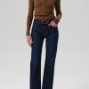 The Kimberly is a high-rise flare designed to elongate the leg and contour the waist. This version is finished with front patch pockets for a subtle utilitarian twist. Crafted from comfort stretch archive denim with a super soft hand, the Abalone wash—a medium indigo with fading and marbling—adds a vintage-inspired finish. Style with crisp shirting or fitted knits for an effortlessly polished look.