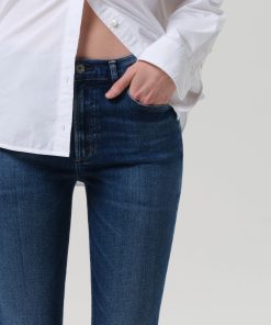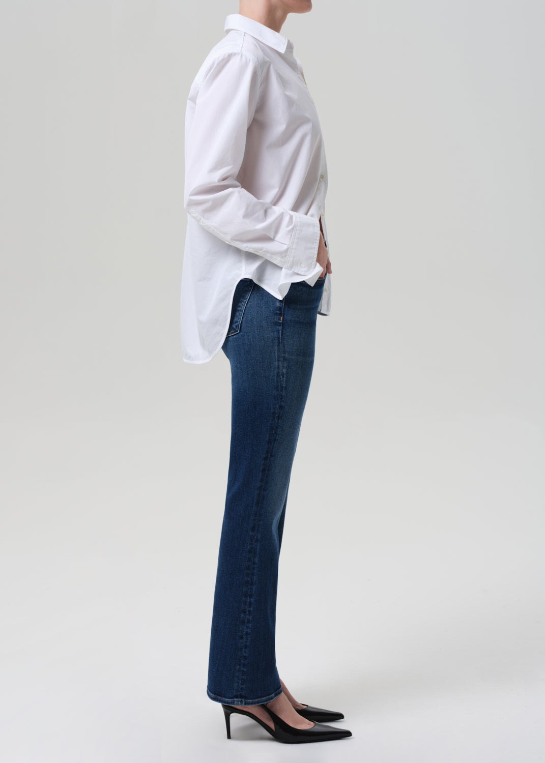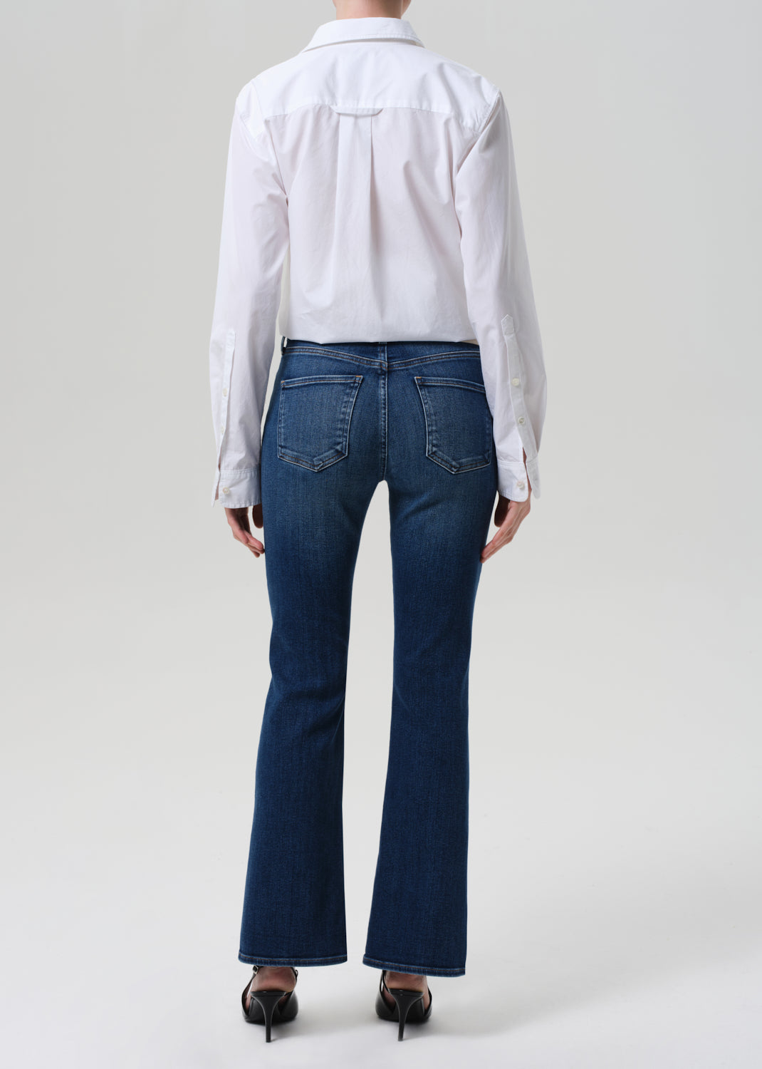 The ‘Lilah’ is a modern bootcut with a flattering high rise and elongating full-length inseam. Cut from soft, stretch denim with a lightweight feel, it offers comfort and shape retention in equal measure. Augusta is a versatile medium indigo with soft fading and whiskering—perfect with a tucked tee or crisp shirting.