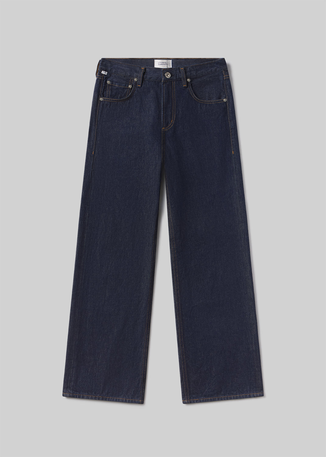 The ‘Lindz’ is a relaxed straight leg with a low rise and an effortless attitude. Crafted from rigid regenerative cotton with a soft hand, it channels a subtly undone feel. Amherst’s clean, dark rinse brings a refined edge—style with a classic button-down or oversized knit for everyday polish.