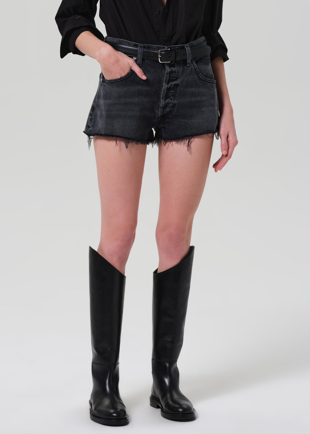 The Loro Short is crafted from 100% regenerative cotton, featuring a high-rise fit, short inseam, and raw hem for a laid-back, vintage-inspired look. This non-stretch denim piece offers structure and comfort, making it an essential for warm weather styling. Pair it with a casual tee or a flowy blouse for a relaxed, effortlessly chic summer outfit.