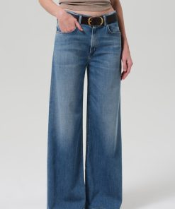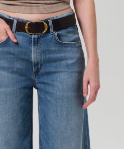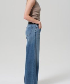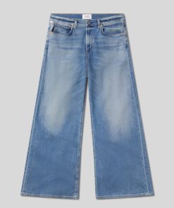 The Lyra is a vintage-inspired wide leg that sits high on the waist with a relaxed top block and full-length inseam. Crafted from soft stretch denim with a lightweight feel, Bhodi is a medium indigo wash with marbling and whiskering for a worn-in look—perfect paired with crisp shirting or a simple tee.