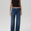 The Lyra is a vintage-inspired wide leg that sits high on the waist with a relaxed top block and full-length inseam. Crafted from soft stretch denim with a lightweight feel, Bhodi is a medium indigo wash with marbling and whiskering for a worn-in look—perfect paired with crisp shirting or a simple tee.