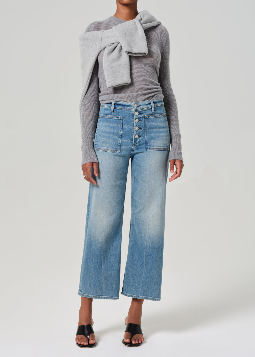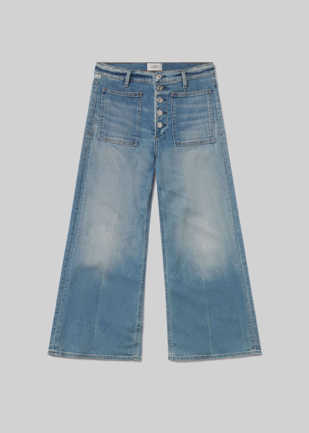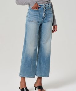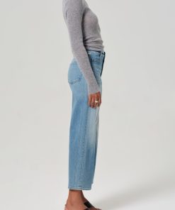 Our Lyra is a vintage inspired silhouette that sits high on the waist with an easy, relaxed top block cut with a cropped inseam with a voluminous raw hem wide leg.