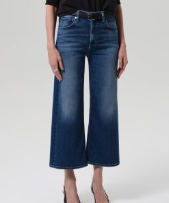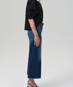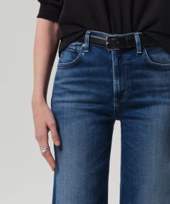 The Lyra is a vintage-inspired wide leg designed with a high rise, relaxed top block, and cropped 27″ inseam. Crafted from soft stretch denim with a lightweight feel, Augusta is a medium indigo wash with subtle fading and whiskering. The clean hem offers a polished finish—easy to style with everything from boots to sandals.