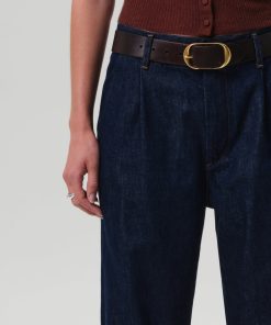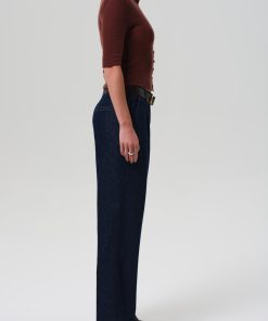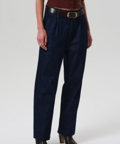 The Mallory Trouser is a refined wardrobe staple, cut from weightless non-stretch denim with a washed-down, ultra-soft feel. Designed with a high rise, straight leg, and front pleat detailing, it offers a clean, elongating silhouette. Dark rinsed indigo adds a polished denim twist—style with anything from sneakers to sleek heels.