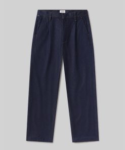 Looks Like: Dark rinsed out indigo denim trouser with pleat front detailing and trouser pockets