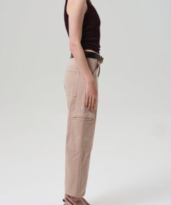 The ‘Marcelle’ is a modern utility staple, cut from soft stretch baby corduroy with a textured hand. Designed with a high rise and tapered leg, it features cargo-style pockets for an effortless balance of structure and ease. The pale beige tone offers a clean, understated palette—versatile with everything from sneakers to boots to sandals.