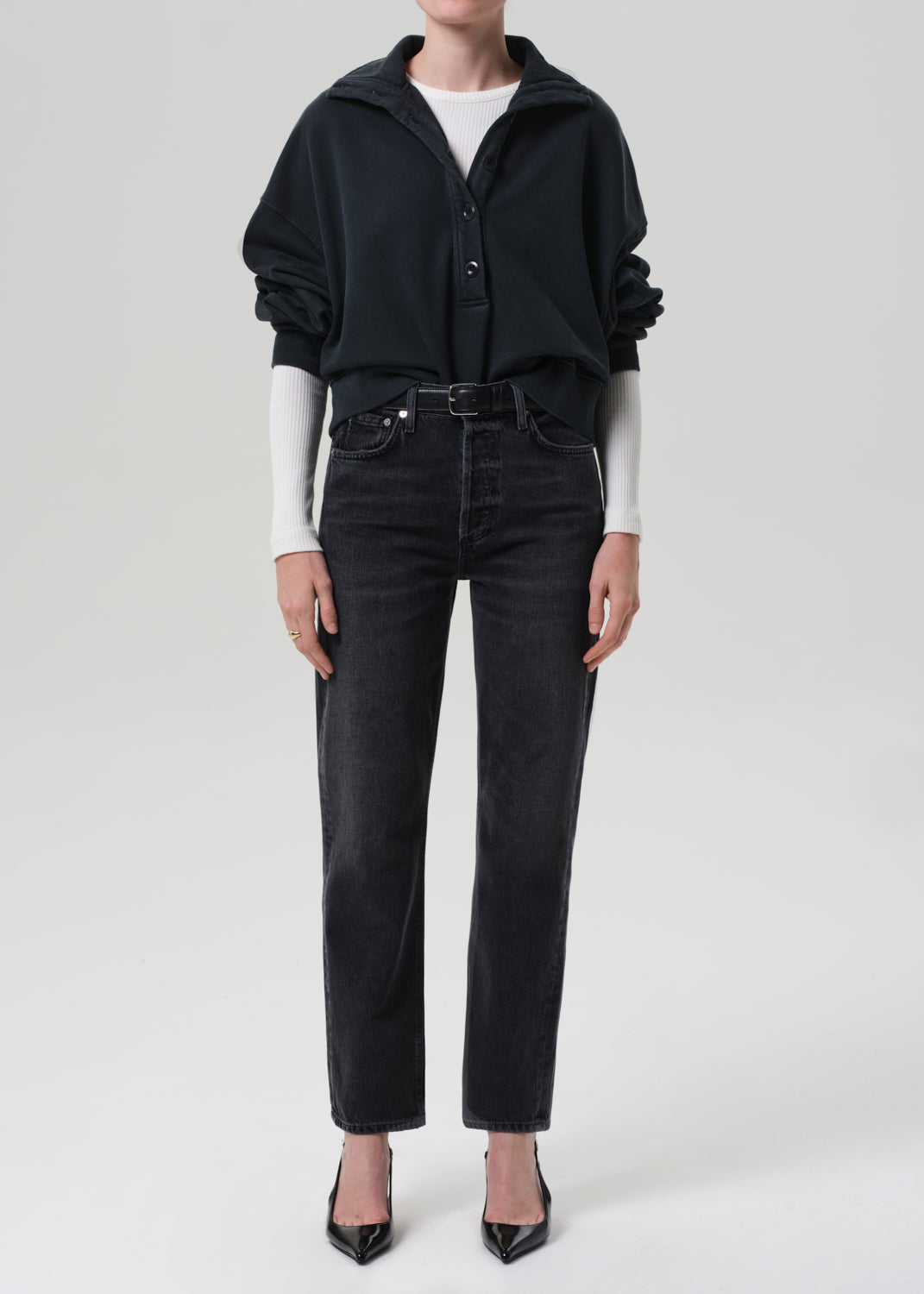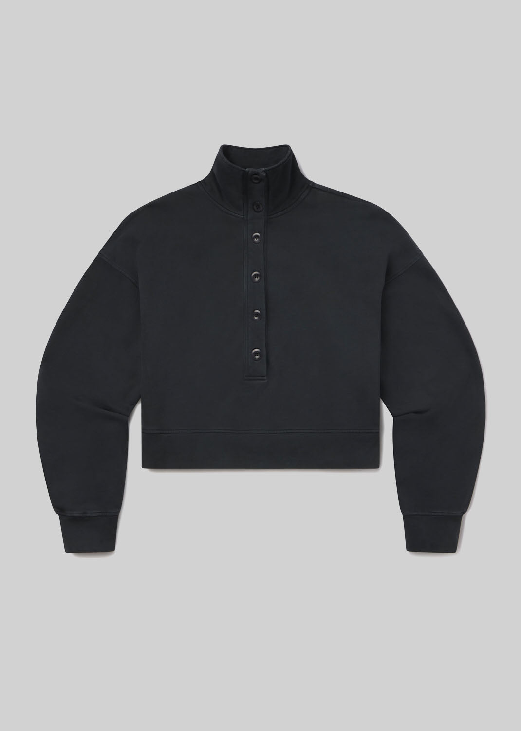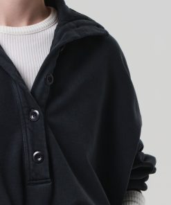 The ‘Mirelle’ is a modern update to the classic sweatshirt, crafted from soft brushed fleece with a plush, cozy feel. Designed with a high funnel neckline and button closure, the relaxed silhouette offers warmth and polish in equal measure. Ideal for off-duty layering or elevated lounging.