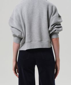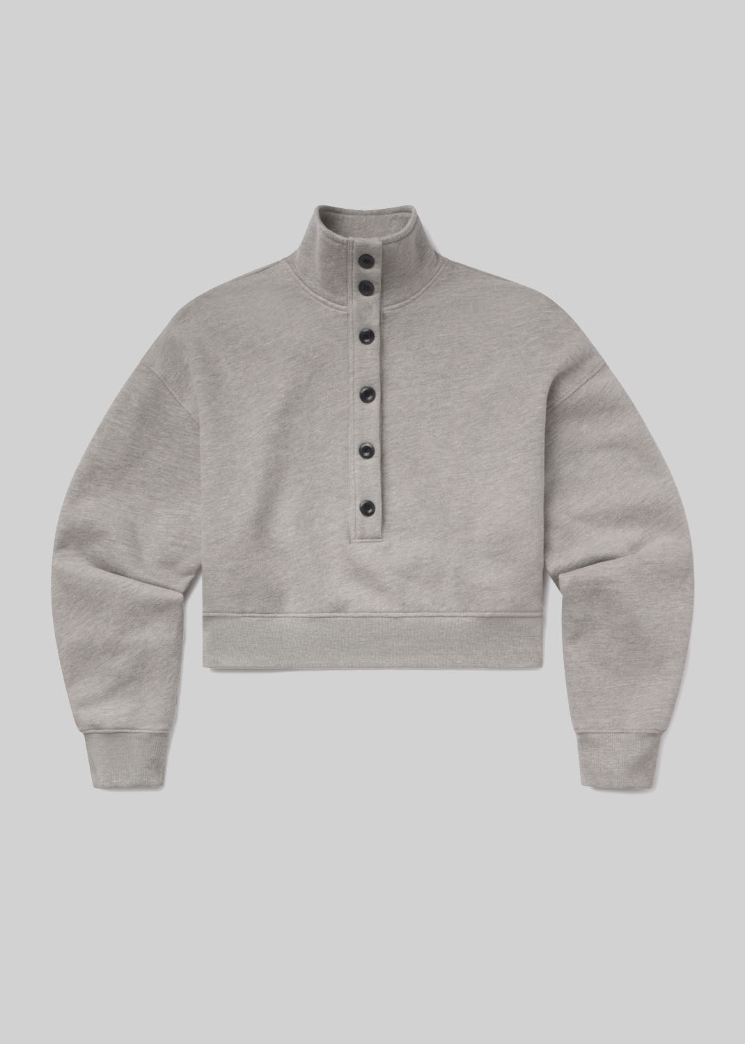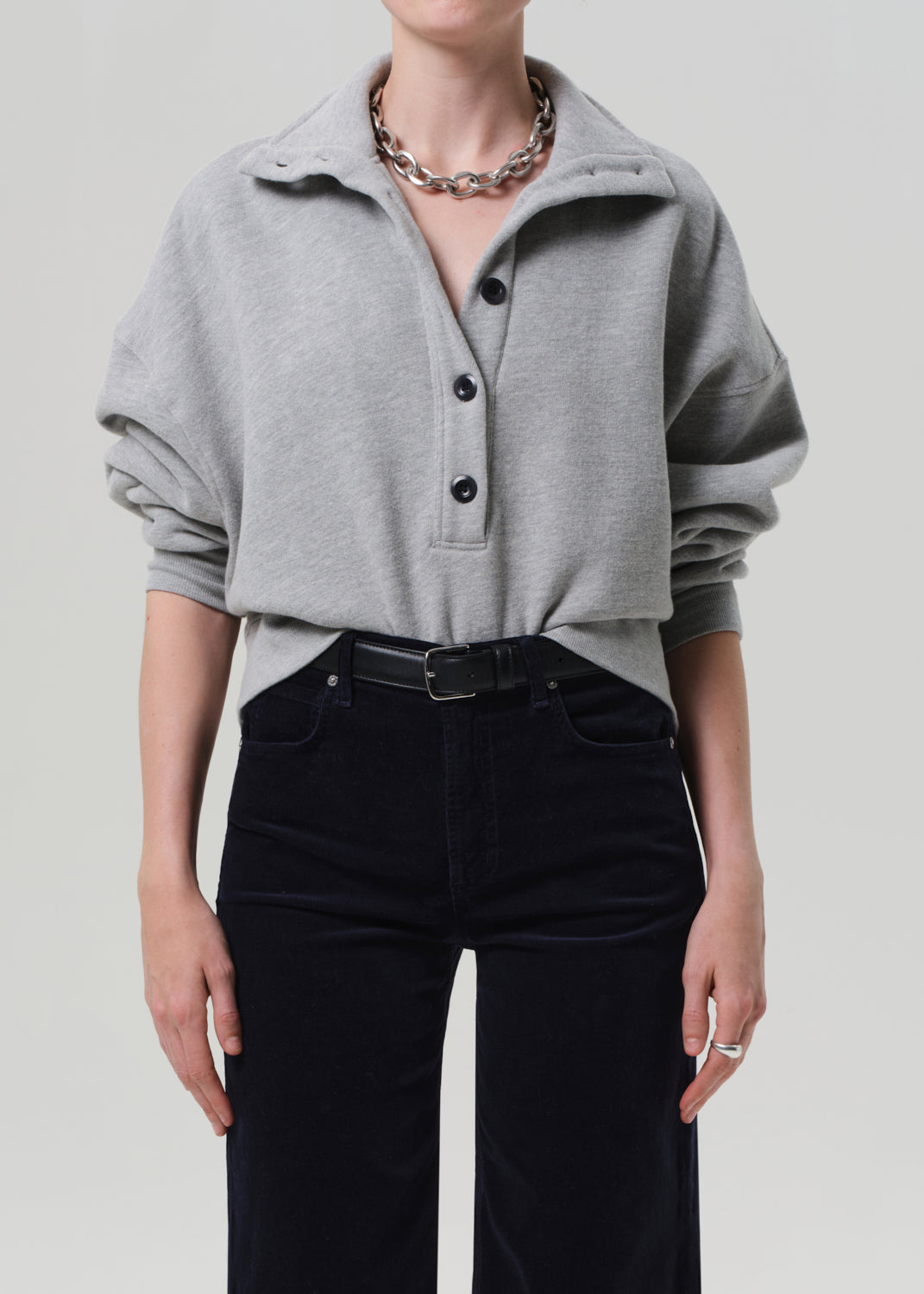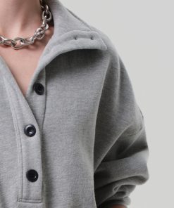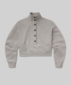 Looks Like: Light heather grey funnel neck sweatshirt with button closure