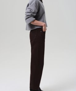 Looks Like: Clean dark brown denim pant