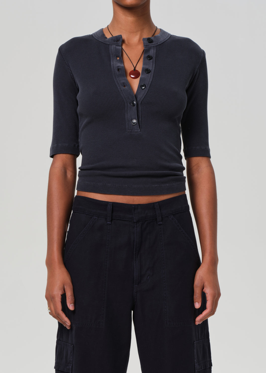 Looks Like: Dark charcoal 3/4 sleeve henley