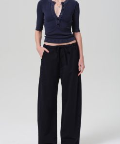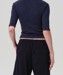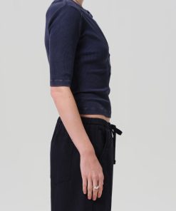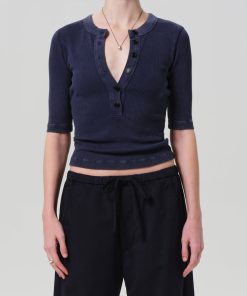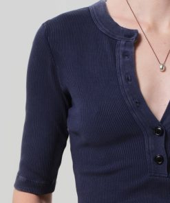 Looks Like: Deep navy mineral dyed 3/4 sleeve henley