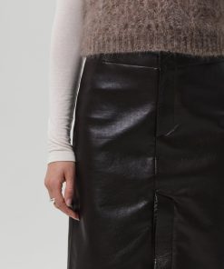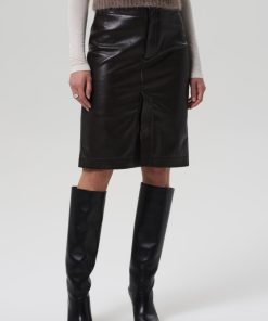 The Nara is a sleek pencil skirt cut from buttery recycled leather with a hint of stretch for ease. In rich Chocolate brown, the silhouette is clean and elongating, finished with a subtle slit for movement and edge. A timeless staple that pairs effortlessly with crisp shirting or the matching leather top for a streamlined set.