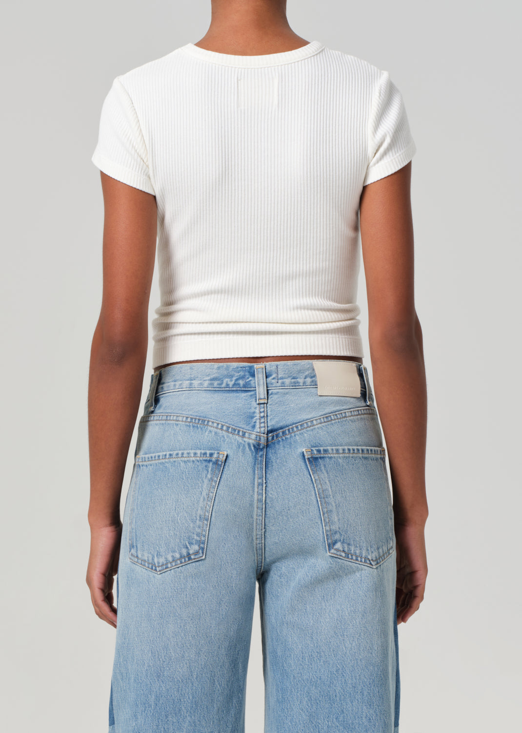 The ‘Nello’ Tee is a refined essential, crafted from a super soft sweater rib with just the right amount of stretch. Featuring a classic crew neckline and short sleeves, the close fit makes it ideal for layering or wearing solo.