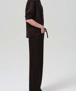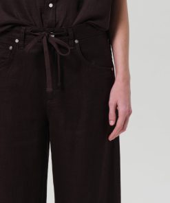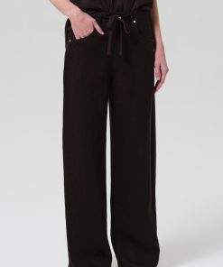 Looks Like: Deep dark brown linen trouser with drawstring detail