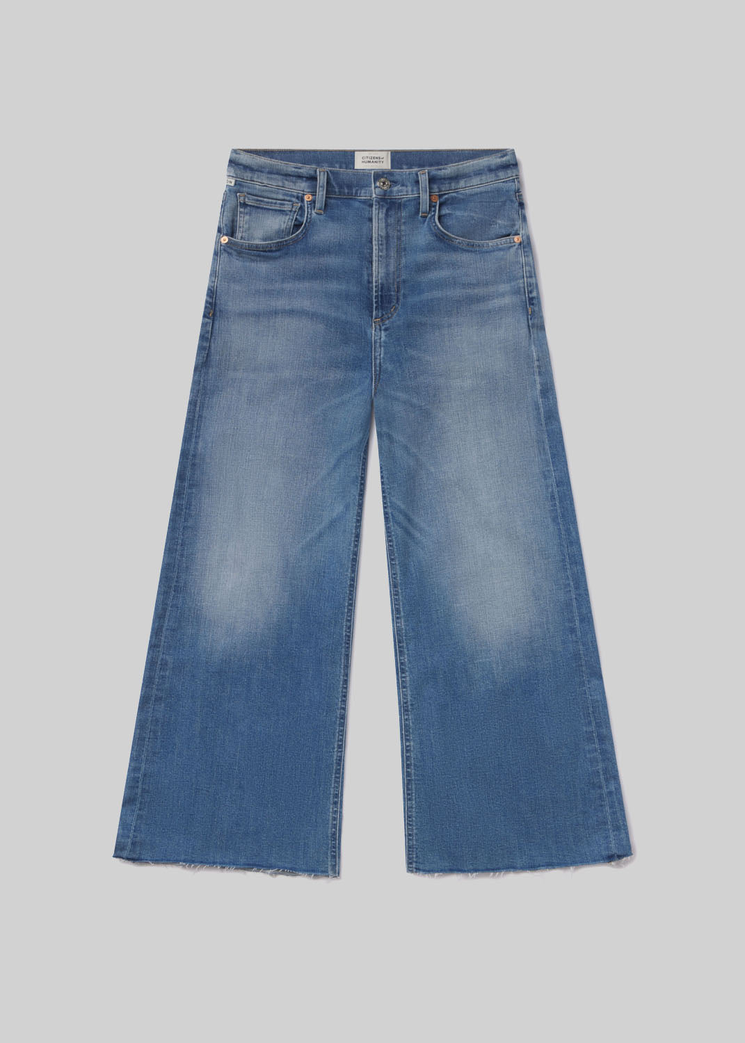 Our Lyra is a vintage inspired silhouette that sits high on the waist with an easy, relaxed top block cut with a cropped inseam with a voluminous wide leg.