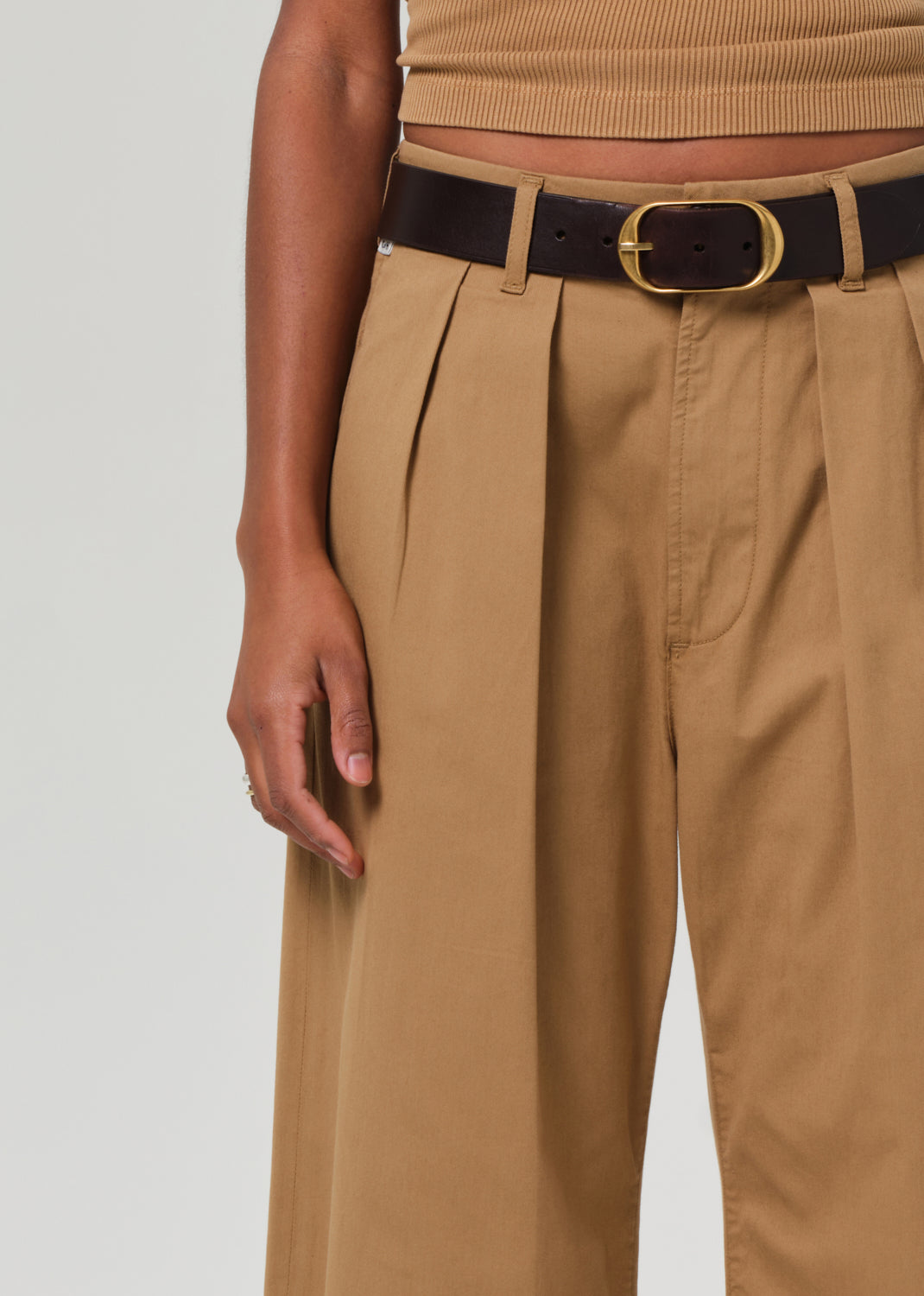 The Petra Trouser is crafted with expertly placed pleats and a relaxed fit, offering an effortlessly sophisticated silhouette. Made from a twill fabric with a hint of stretch, it combines comfort with refined tailoring. Perfect for both casual and elevated looks, style it with a simple blouse or a tucked-in sweater for a versatile, polished ensemble.