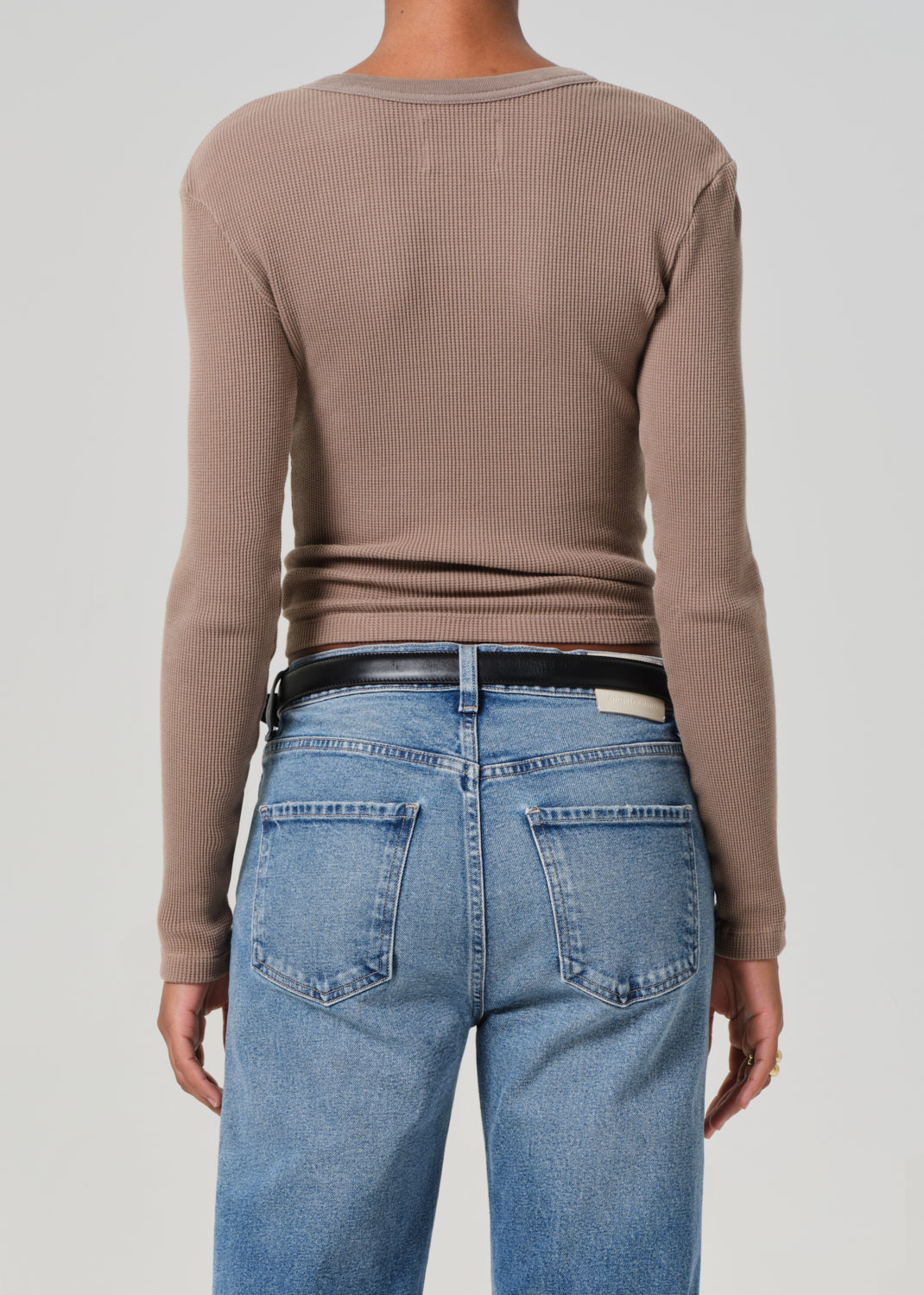 Feels Like: Midweight super soft cotton with waffle thermal texture