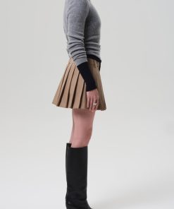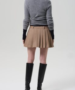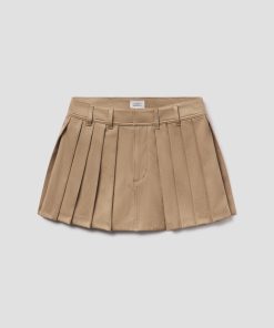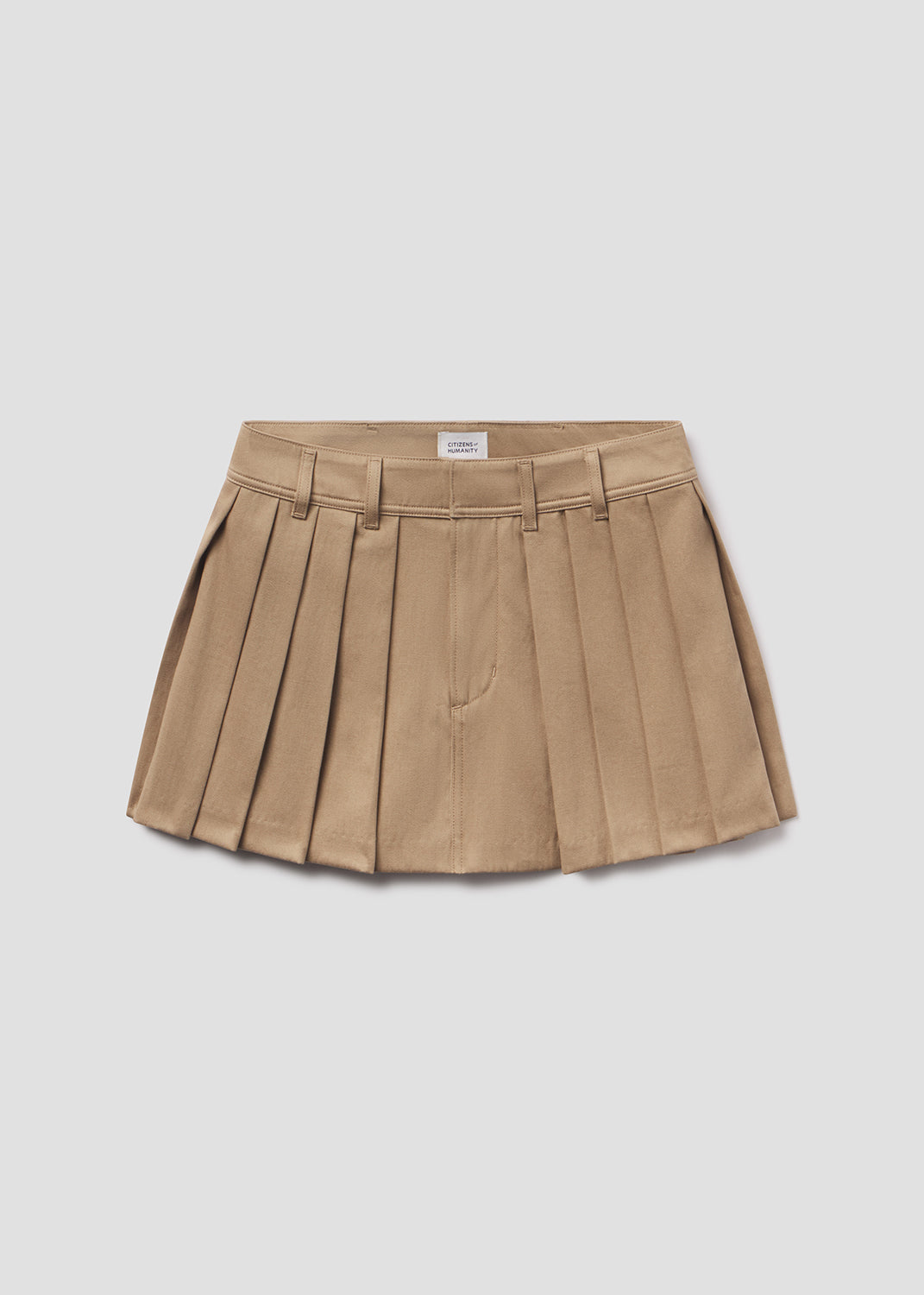 A clean mini with subtle volume, this pleated skirt is rendered in polished cotton twill with a soft, substantial hand. The khaki hue brings a utilitarian slant to the feminine silhouette.