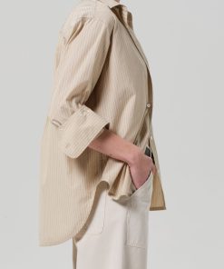 A closet essential. Our Shay is tailored to perfection. With a subtle roomy silhouette and a delicate collar neckline – style back to basic denim and elevate your whole look.