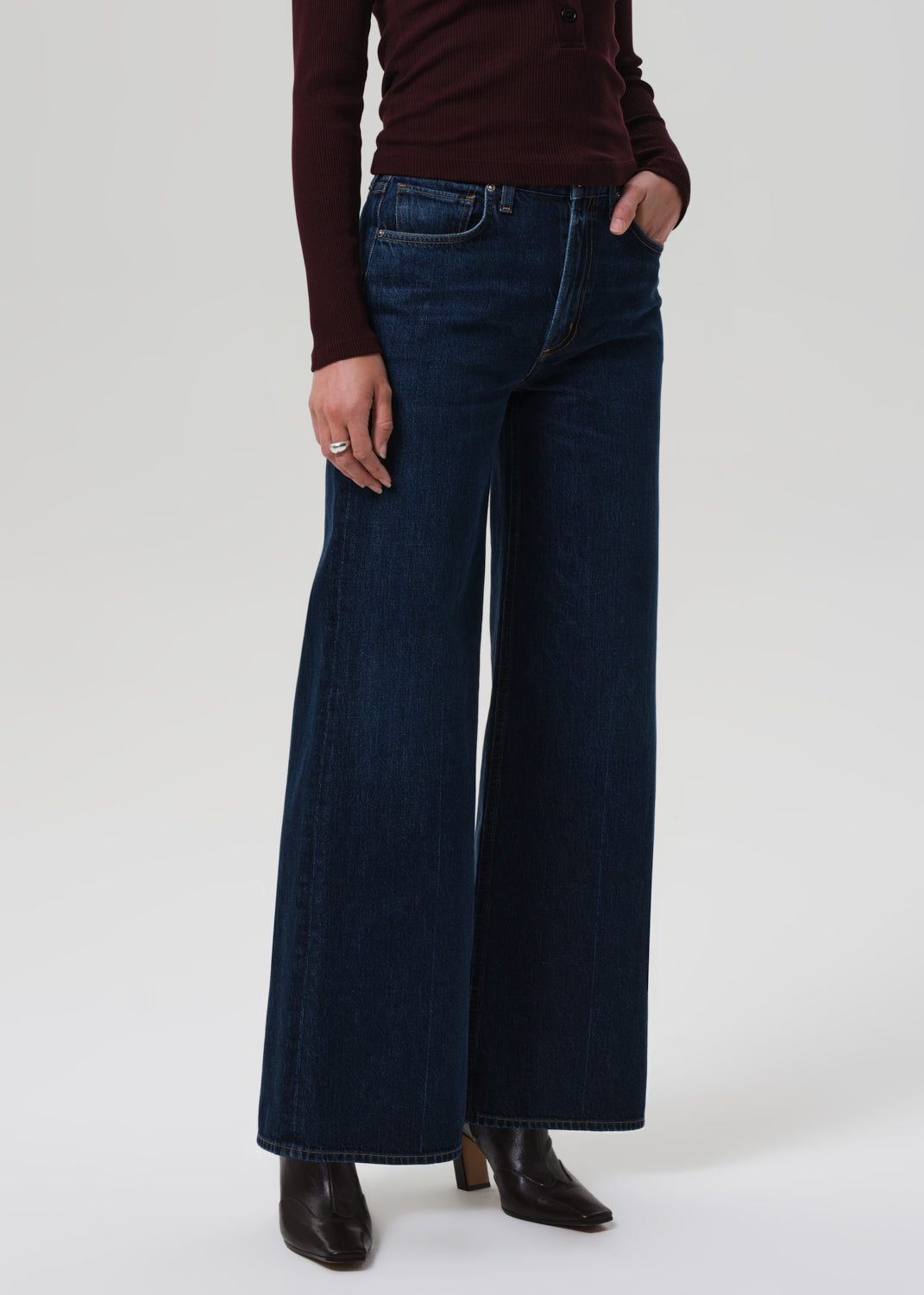 The ‘Paloma’ is a high-rise baggy jean with a wide, full-length leg and easy drape through the hip. Crafted from lightweight, non-stretch regenerative cotton denim with an ultra-soft hand, it offers a fluid, vintage-inspired silhouette. Medina is a rich dark indigo wash—perfect paired with a tucked tee or crisp shirting.