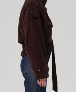 A fresh take on outerwear, the Short Favi Trench features a cropped, crossover silhouette with an optional tie at the waist. The velvety finish adds depth and texture—ideal for layering over slim knits or tailored trousers.