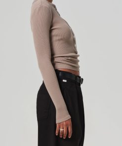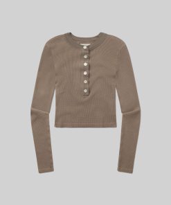 Looks Like: Medium olive green mineral dyed fitted long sleeve henley