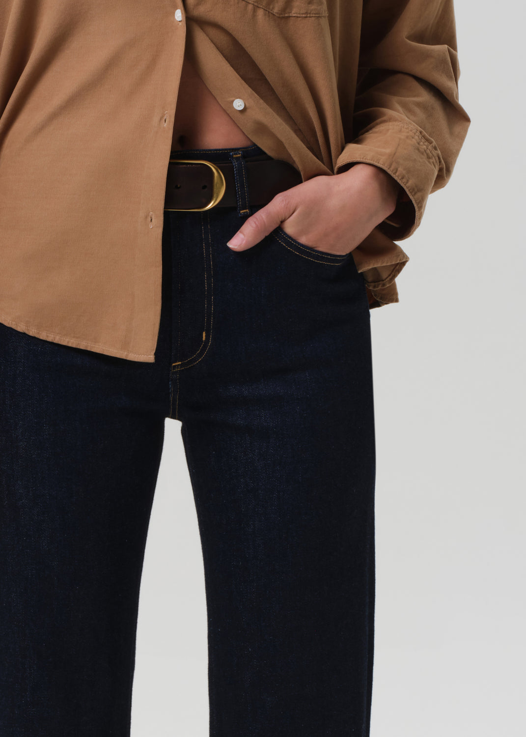 Looks Like: Clean deep dark indigo denim pant