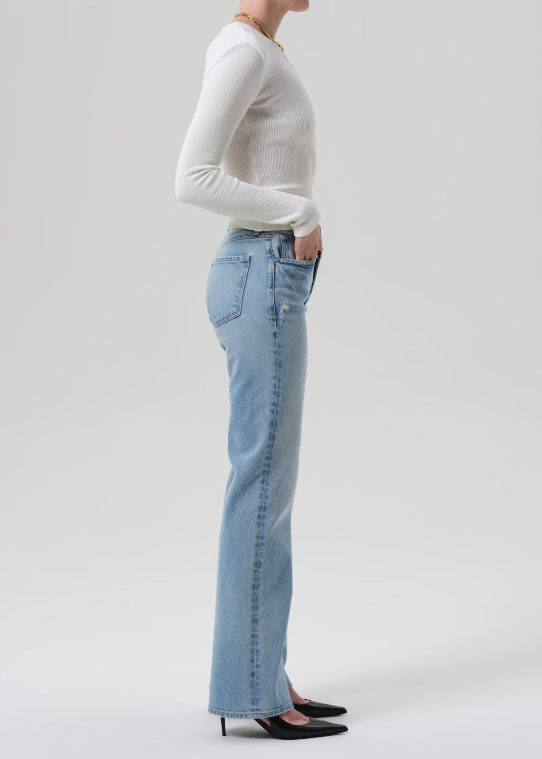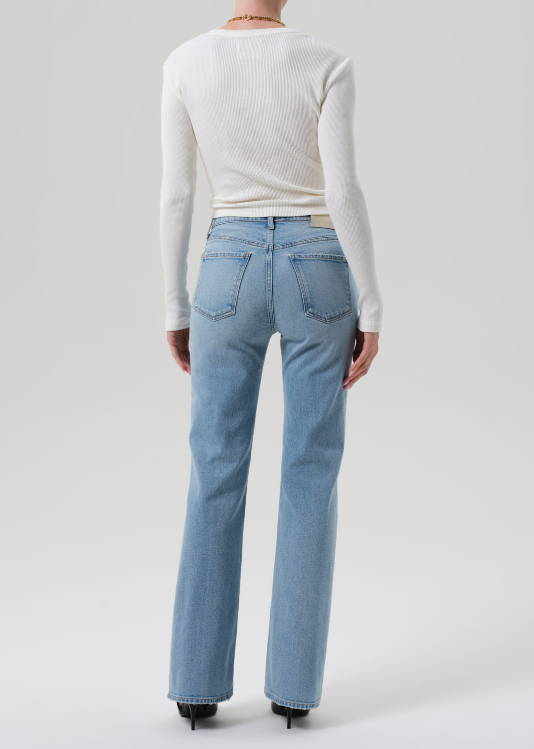 Designed with a full-length leg and subtle bootcut shape, the ‘Vidia’ balances classic proportions with a modern edge. Cut from Japanese comfort stretch denim, it offers structure with a soft hand and all-day ease. A polished alternative to your everyday straight leg.