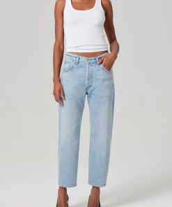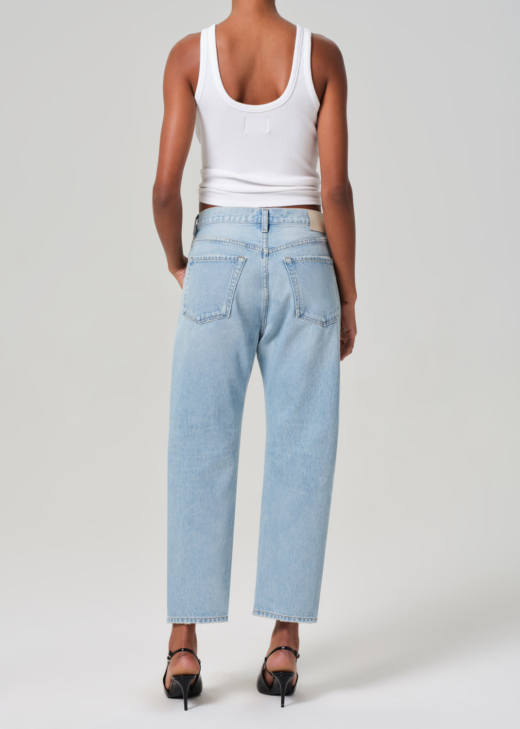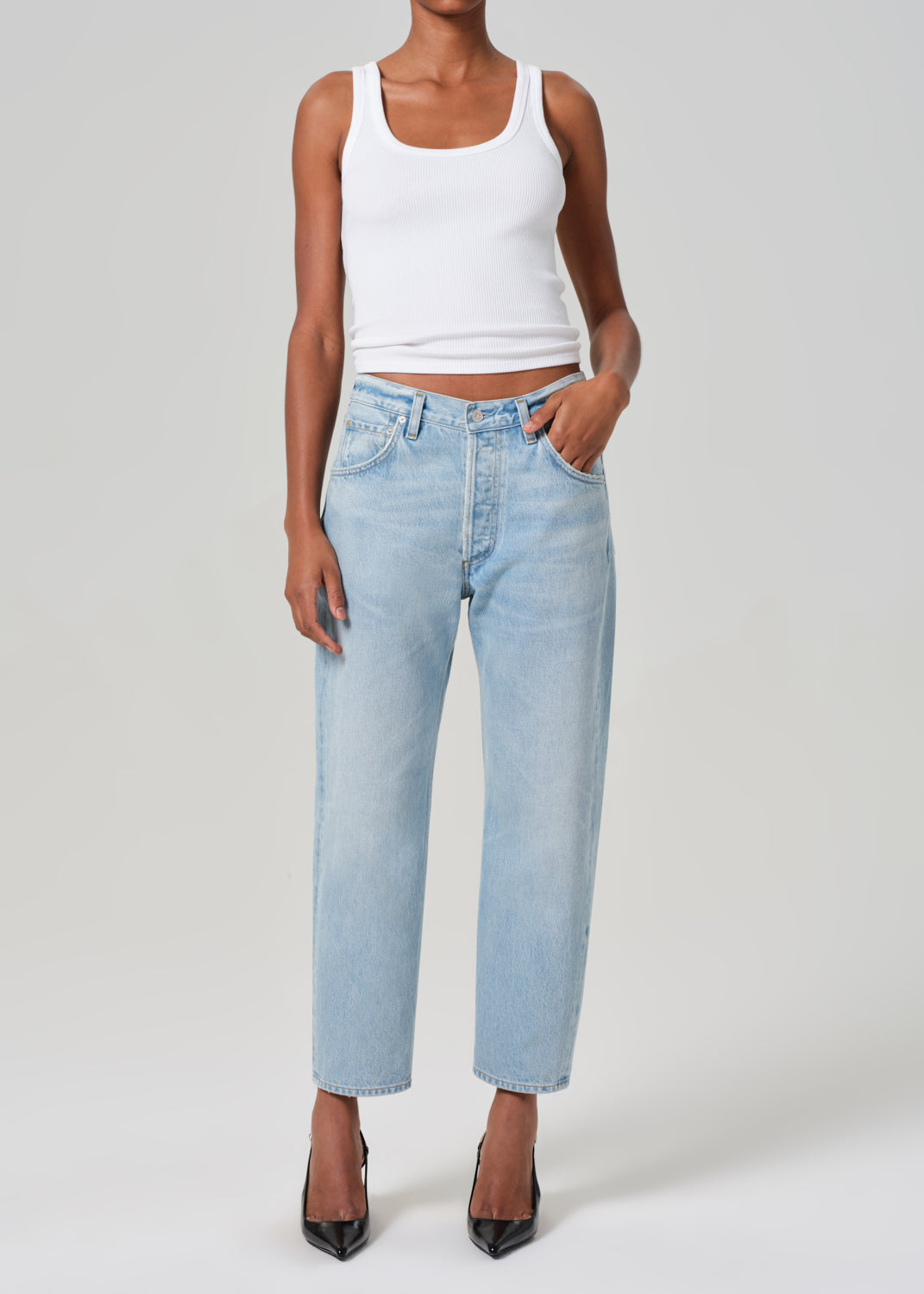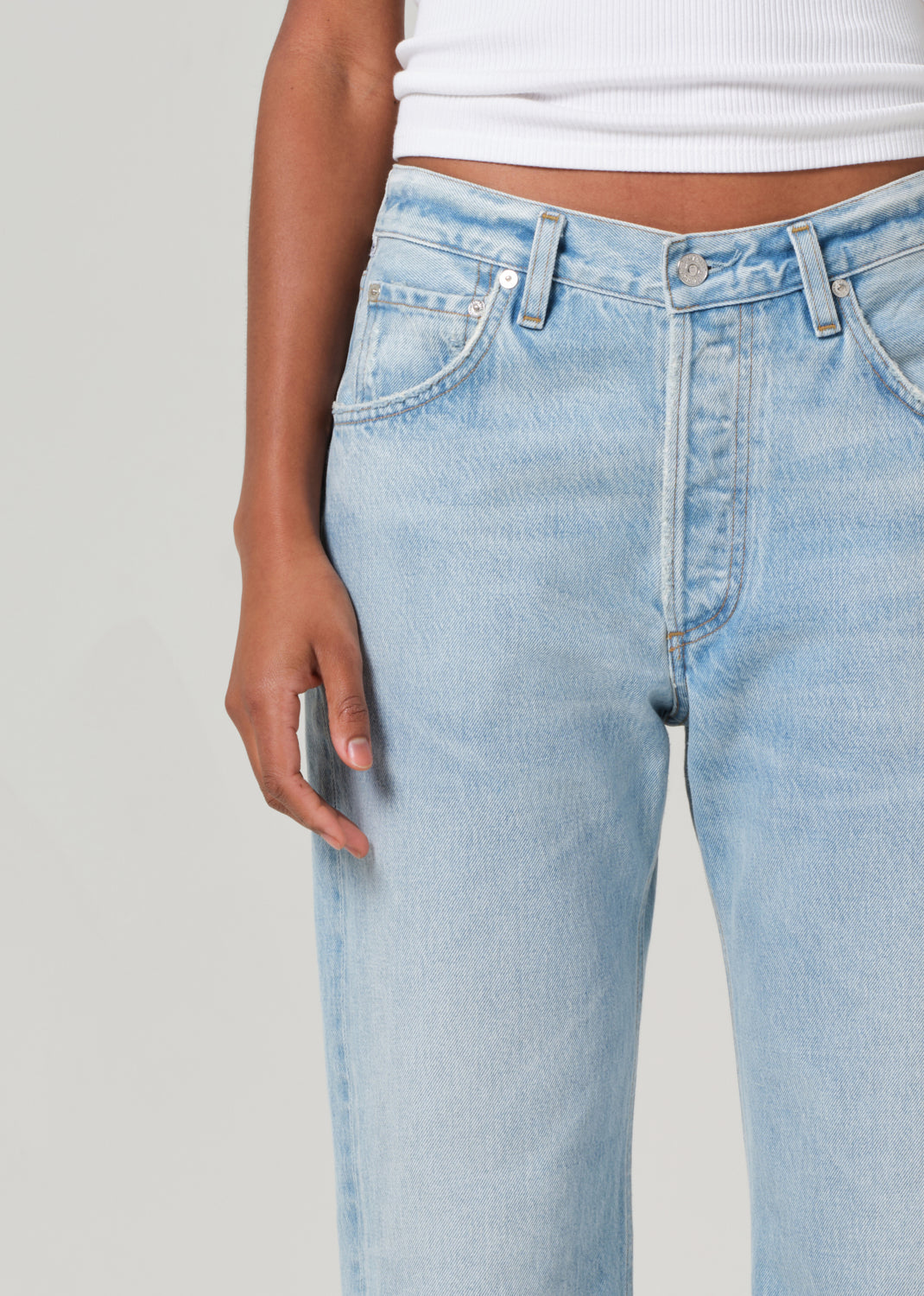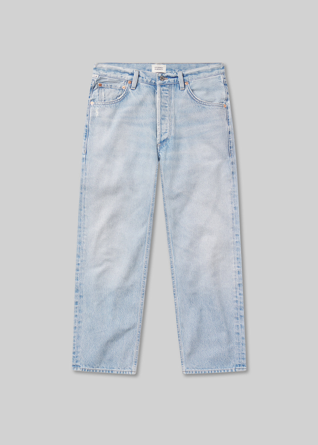 Worn-in and easy, the Winslow channels vintage denim with a modern edge. Crafted from soft, non-stretch regenerative cotton, the light washed indigo and subtle fading give it a laid-back feel. Style it low on the hips with a tucked tee or oversized button-down.
