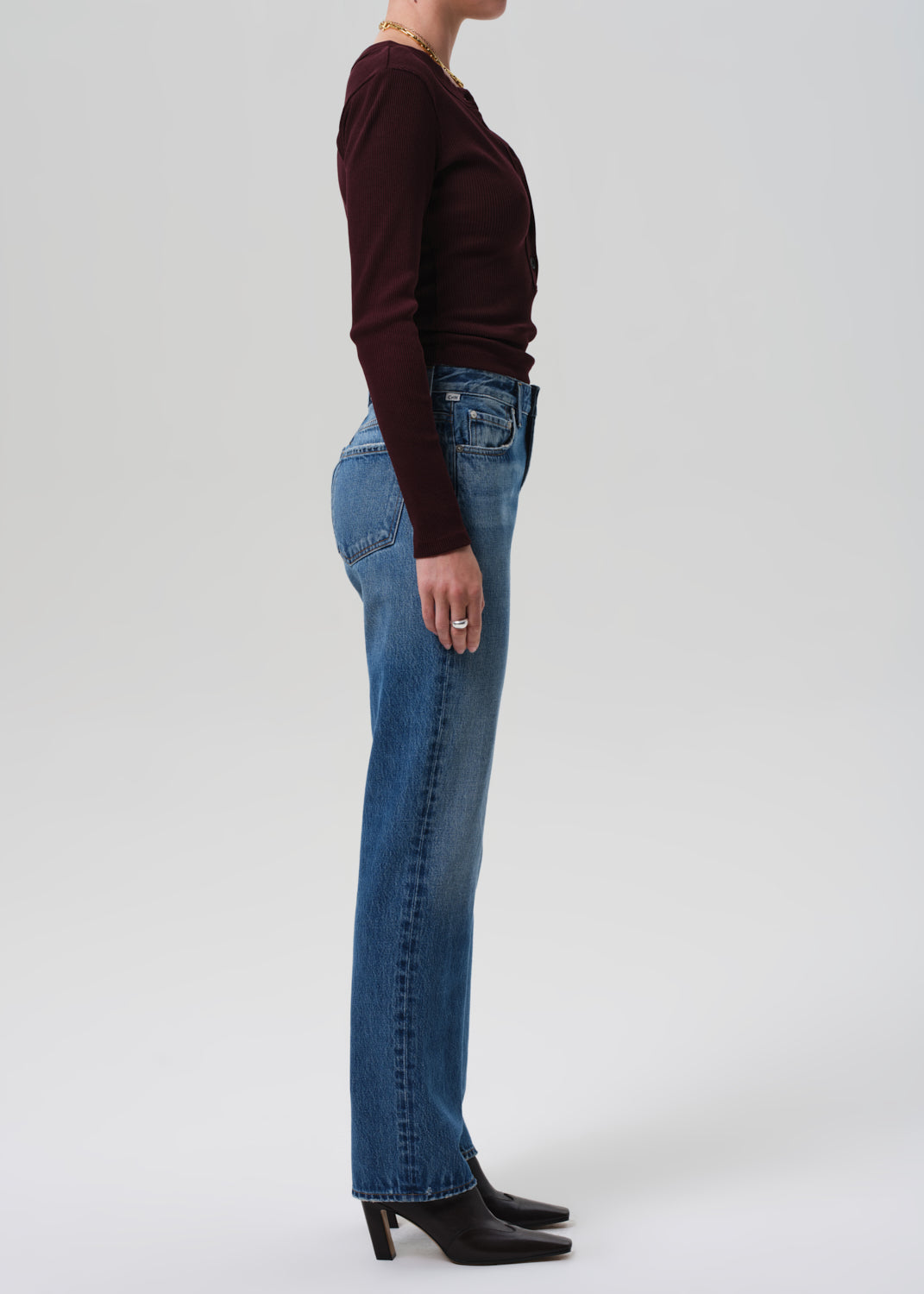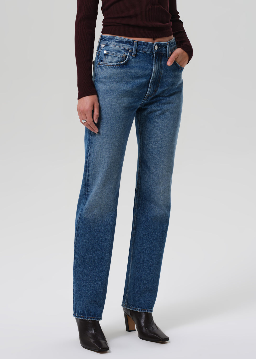 A refined essential with a modern edge, the Zurie is cut with a high rise and straight leg for a streamlined silhouette. Crafted from rigid regenerative cotton denim with a soft, broken-in feel, it offers lasting structure without stiffness. The medium indigo wash adds a lived-in touch—easy to style with everything from crisp shirting to slouchy knits.