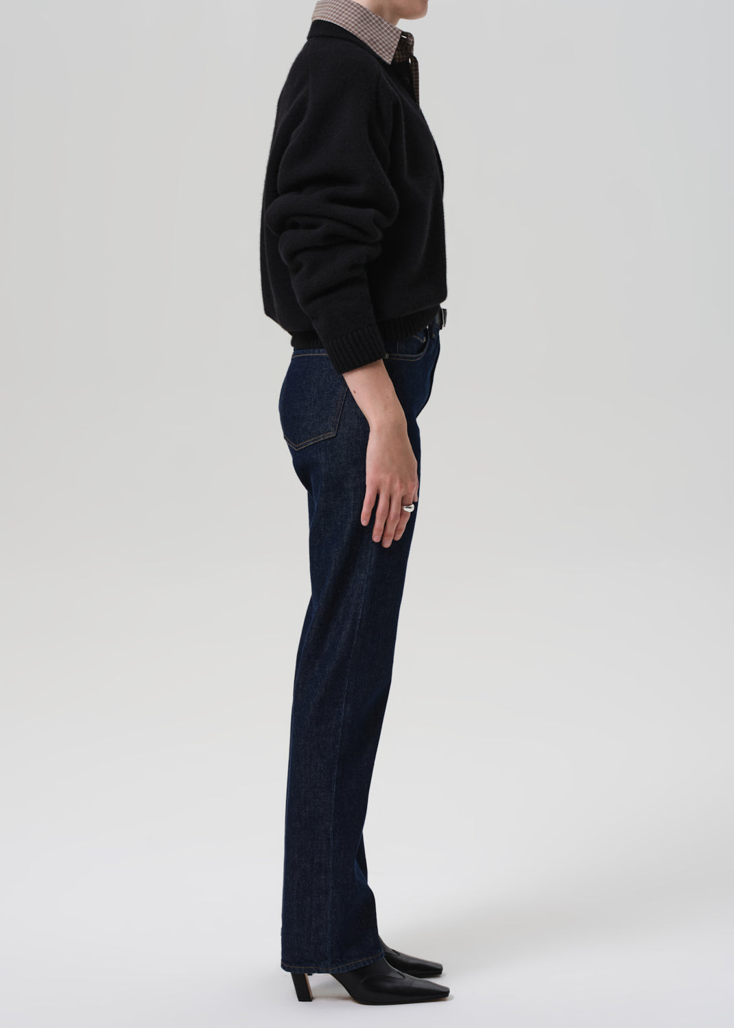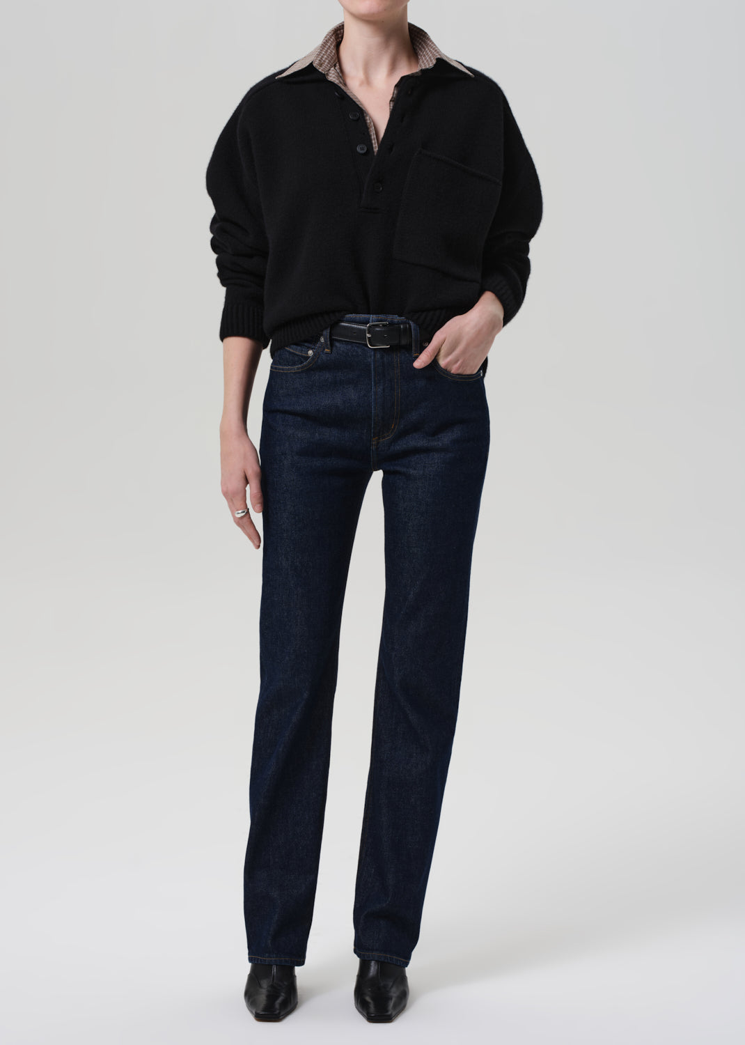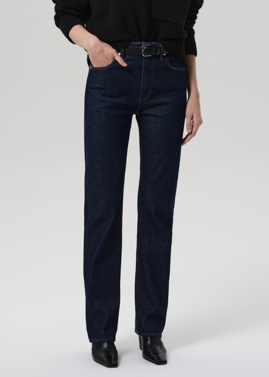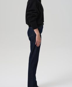 Designed with a high rise and a clean straight leg, the Zurie offers a modern, elongating silhouette. Crafted from soft, comfort stretch regenerative denim, it blends structure with ease for all-day wear. The dark indigo wash keeps the look refined—ideal with everything from oversized shirting to tailored layers.