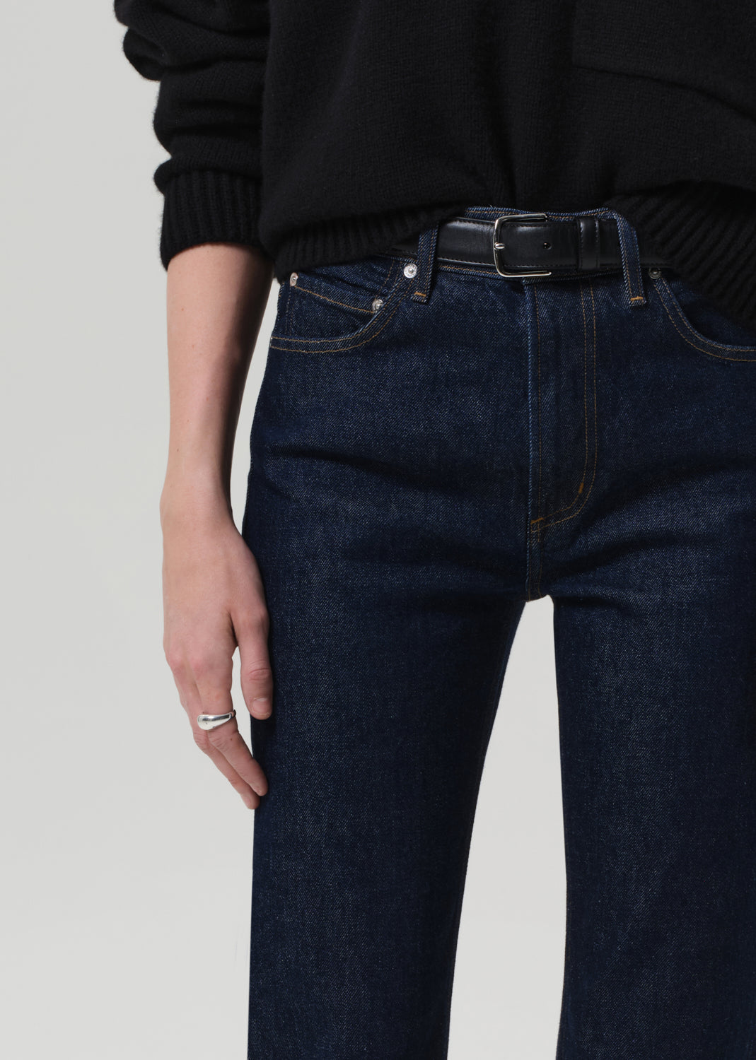 Looks Like: Dark indigo denim pant