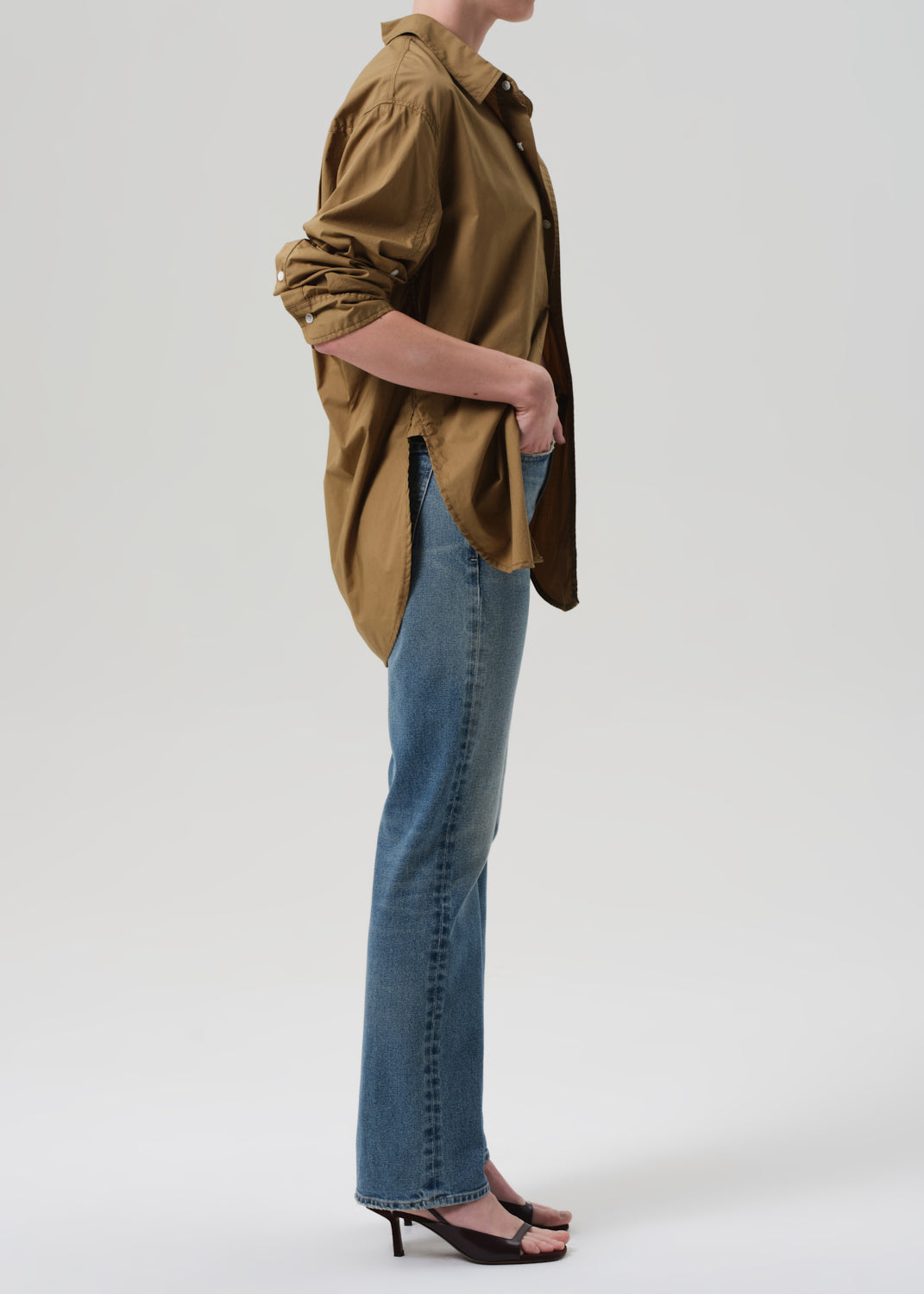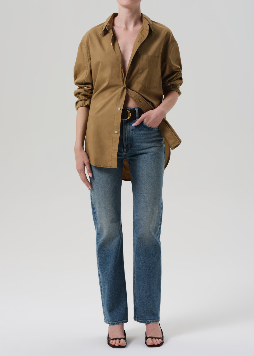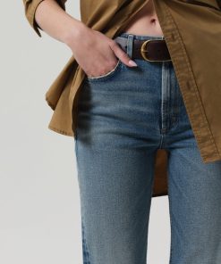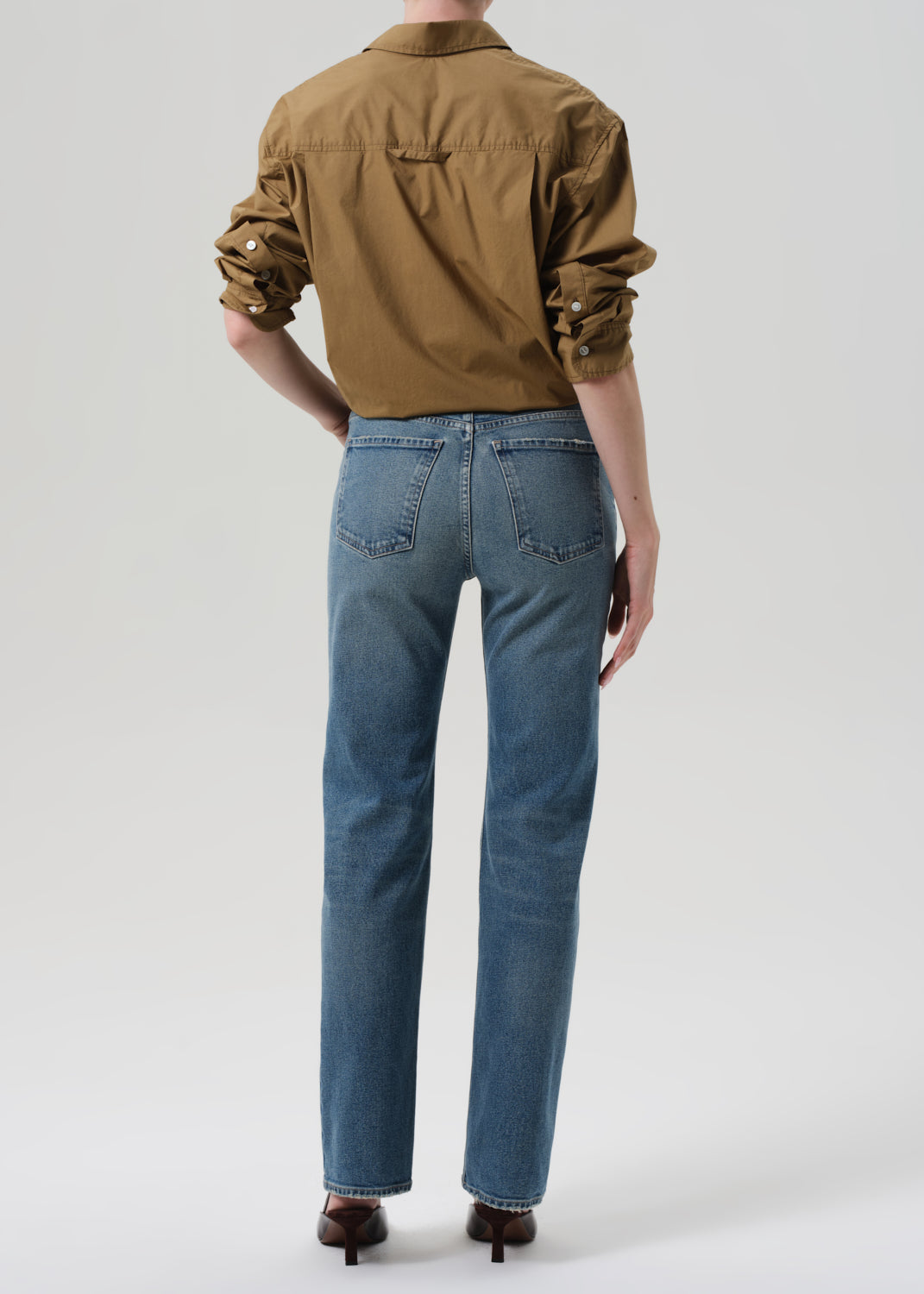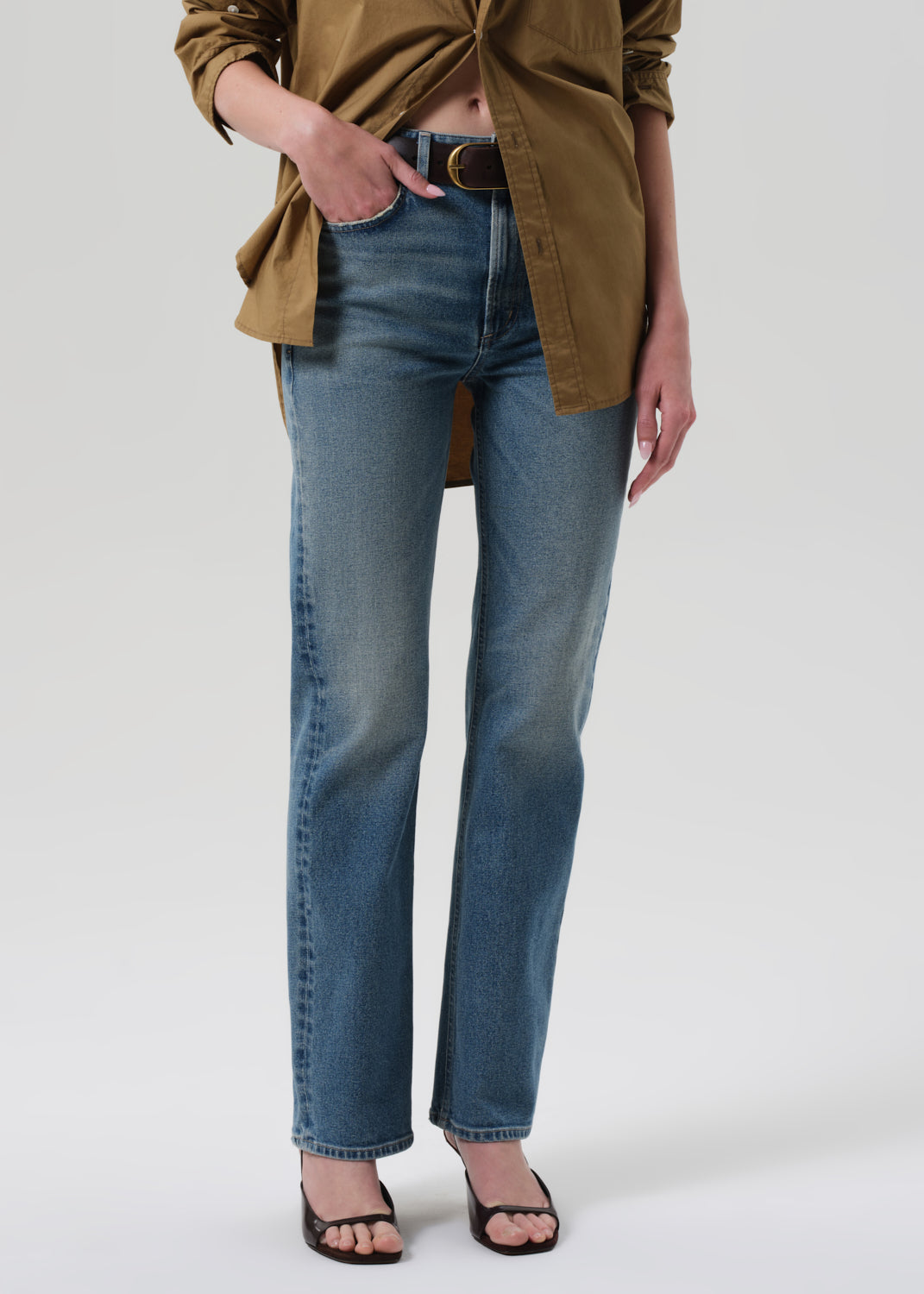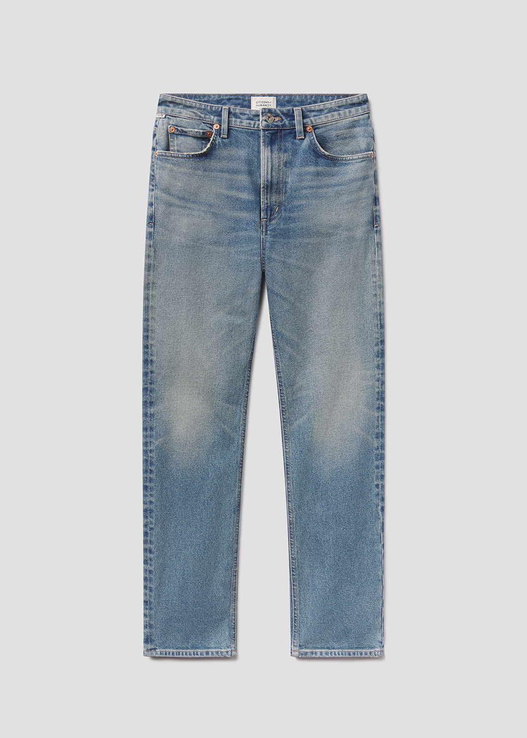 The Zurie is a high-rise straight leg that offers timeless structure with just the right amount of ease. Cut from Japanese comfort stretch denim, it has a soft yet supportive feel that holds its shape. The medium indigo wash lends a vintage note—pair it with a relaxed tee or polished knit for effortless styling.